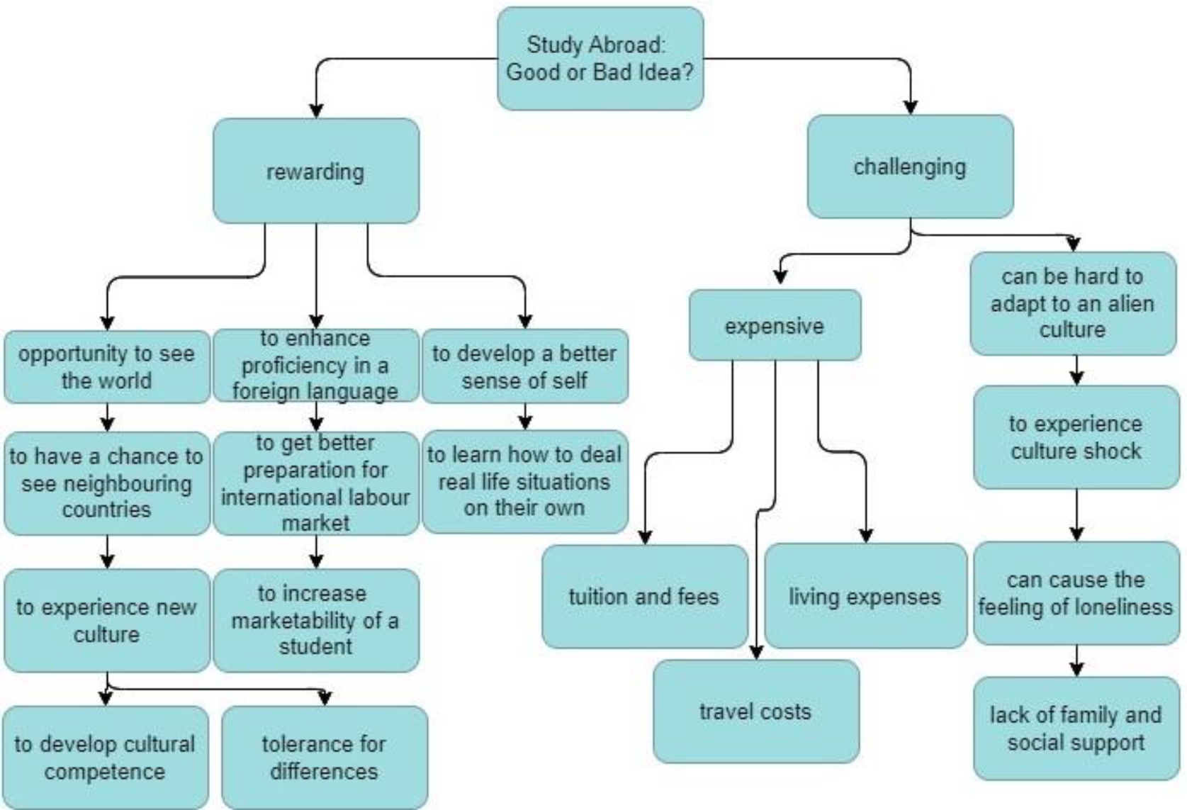 Рис. 1. Концепт-карта Study Abroad: Good or Bad Idea?