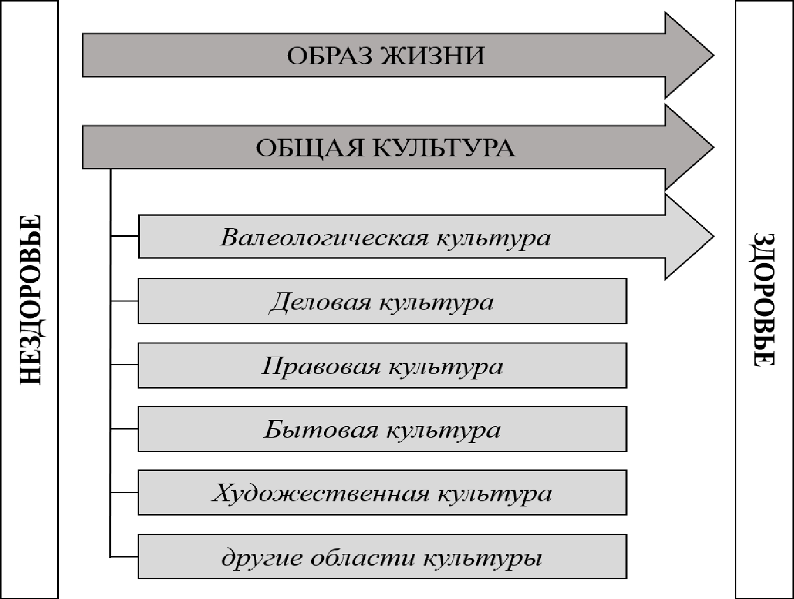 Рис. 2. Место валеологической культуры и ее влияние на общую культуру и образ жизни человека