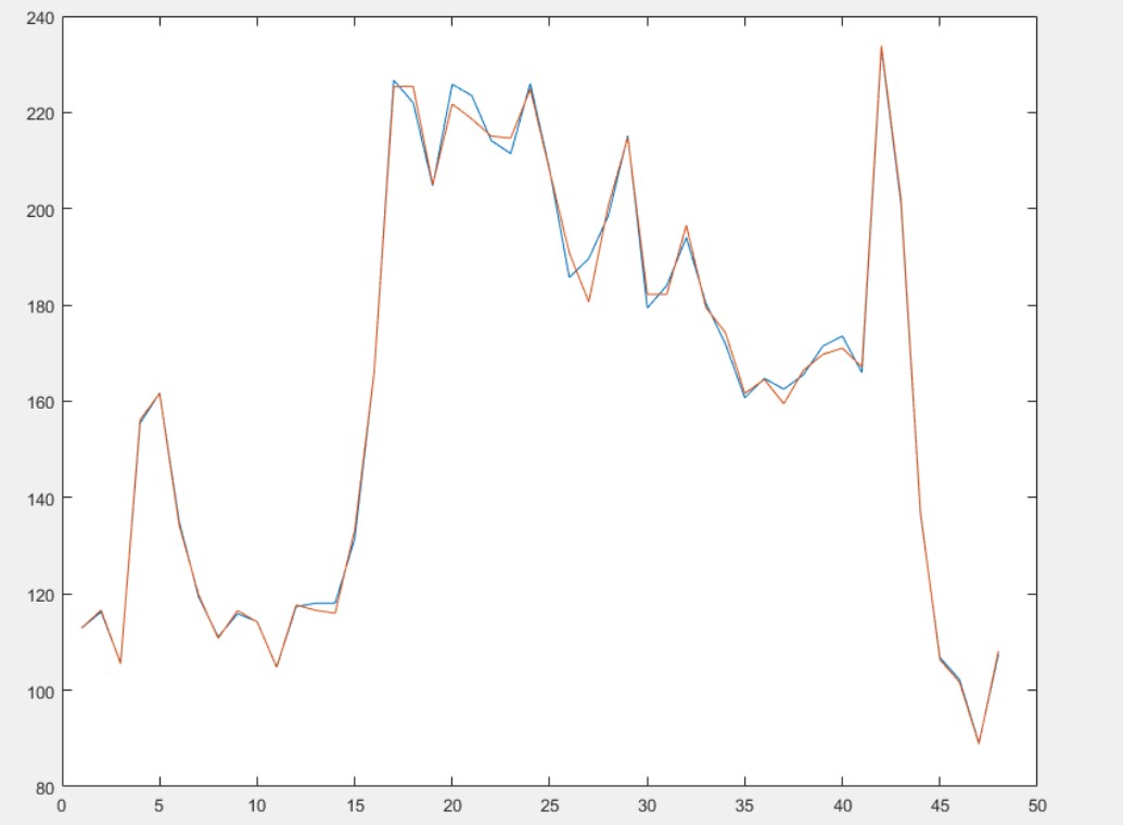 Рисунок 3 – Графики нагрузок: оранжевый – известные данные, синий – спрогнозированный