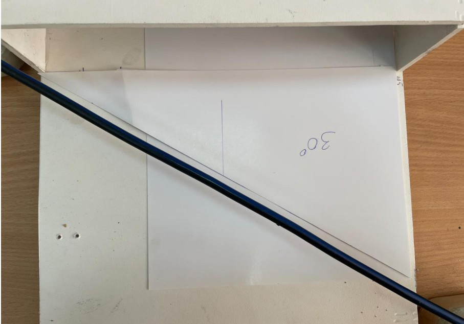 Эксперимент по исследованию влияния ветра (скорость ветра и его направление) на нагрев провода марки СИП проводился при следующих условиях: в начальный момент времени проводник длительное время находился без нагрузки, то есть можно считать, что температура провода в начальный момент времени была установившейся, т. е. равной температуре окружающего воздуха. Далее ток изменялся скачкообразно до значения 130А. При начальном нагреве скорость ветра составляла 0,6 м/с, а в дальнейшем – скачкообразно увеличилась до значения 1,75 м/с. Во время проведения эксперимента производилось изменение угла направления ветра относительно оси провода. Угол задавался, как показано на рисунках 4-6. На рисунке 5 представлен способ установки температурных датчиков. Так как используемый при эксперименте термометр имеет два выхода для подключения датчиков, производился одновременный контроль температуры жилы и изоляции.