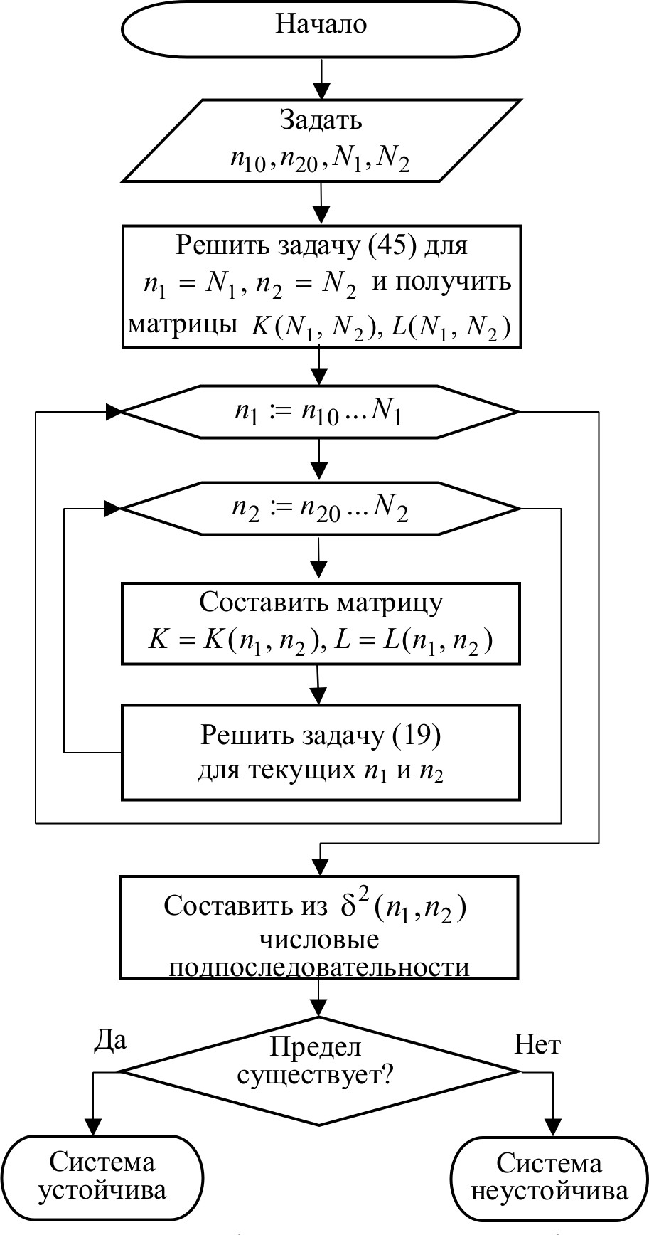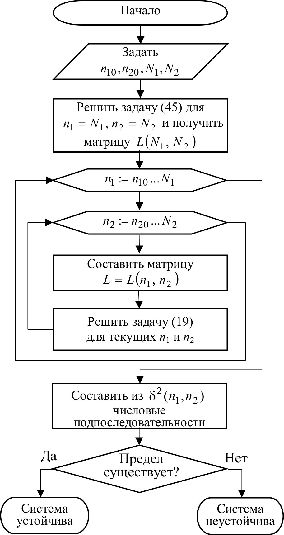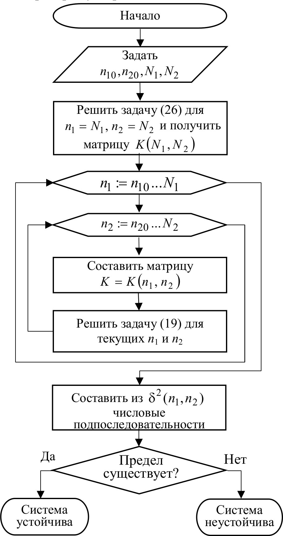 2. Увеличить n2 на единицу. Если n2N2, то перейти к пункту 2, иначе установить n2=n20 и перейти к пункту 4.