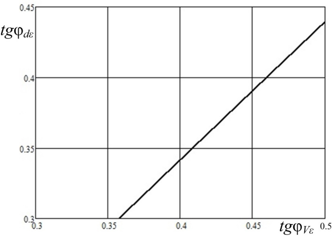 Зависимость коэффициента tgφd от tgφV в САУ коэффициентом РМ на стороне НН трансформатора ГПП