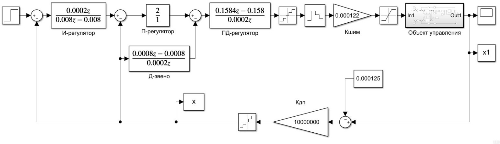 Рис. 3. Расчетная модель цифровой системы управления электромагнитным подшипником