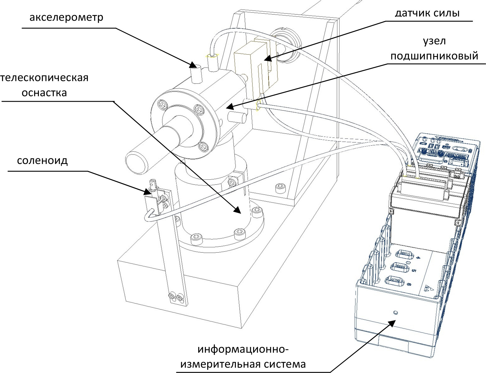 Система предназначена для съема и записи информации от акселерометров, тензодатчика, а также для управления соленоидом. Информационно-измерительная система состоит из датчиков виброускорения PCB 352C34, датчика силы Vishay 614, контроллера NI-cRIO-9056, модулей NI 9250, NI 9237 и NI 9481 и программного обеспечения, написанного на языке Labview фирмы National Instruments [13].