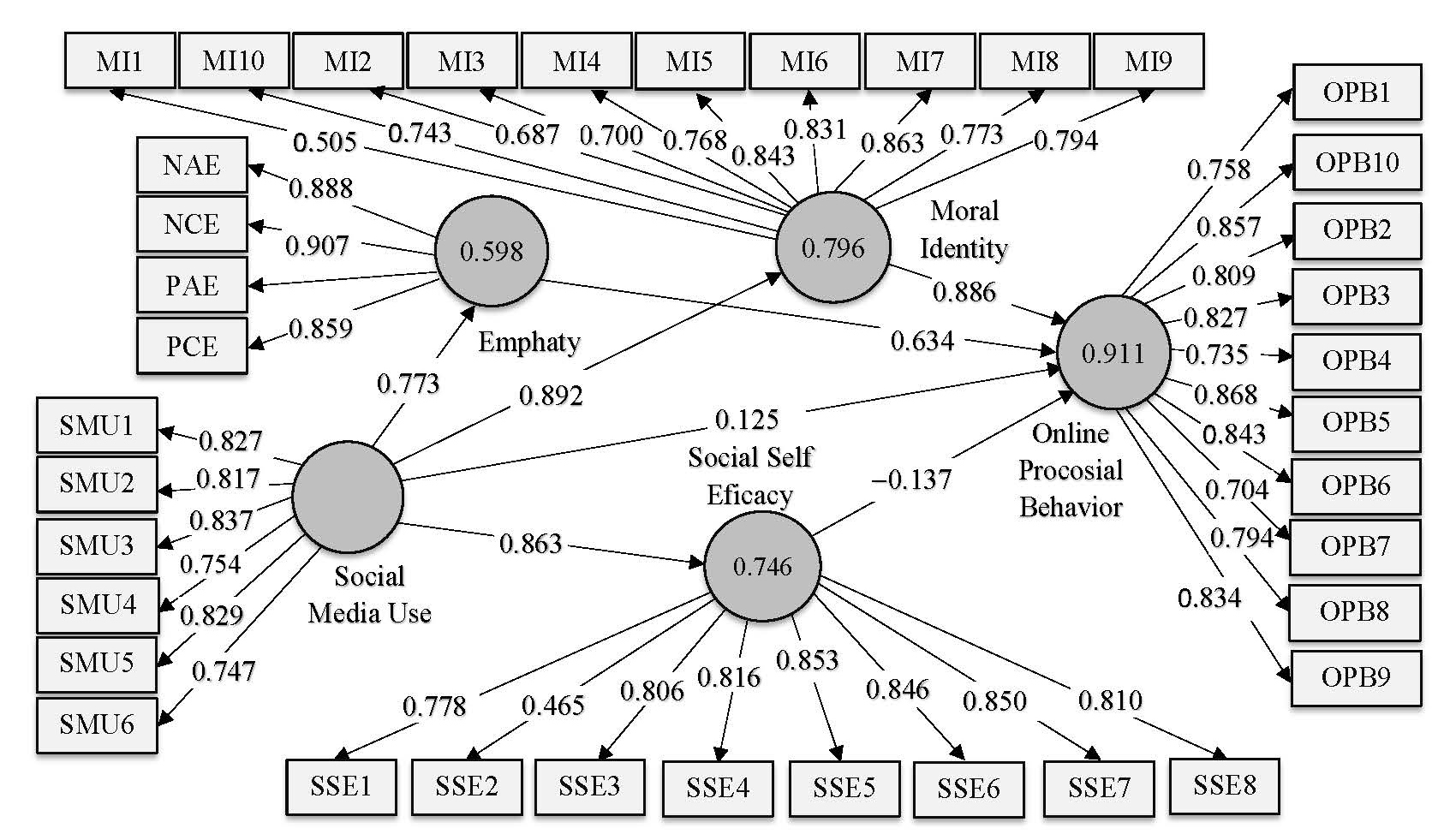 Social Media Use – Empathy – Online Prosocial | 0.497 | 0.497 | 0.034 | 14.612 | 0.000 |