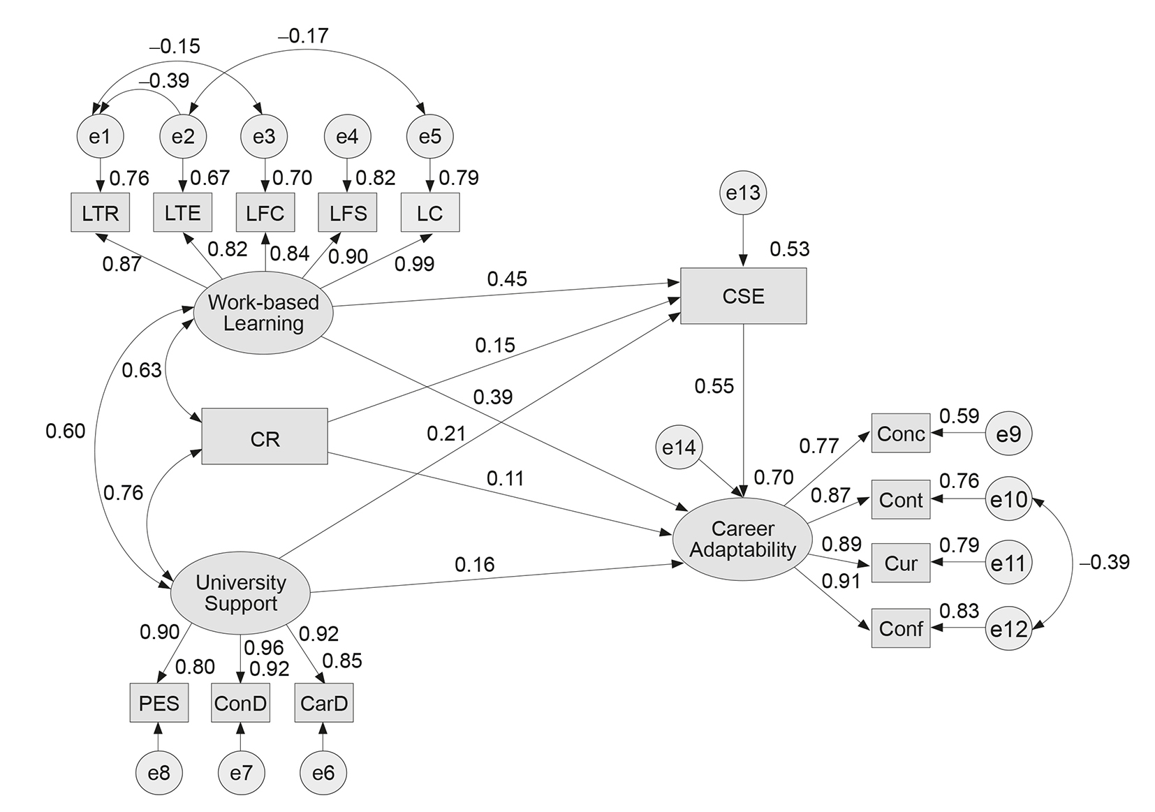 Hypothesis 2. Work-based learning has a significant and positive effect on the strengthening of vocational students’ career self-efficacy.