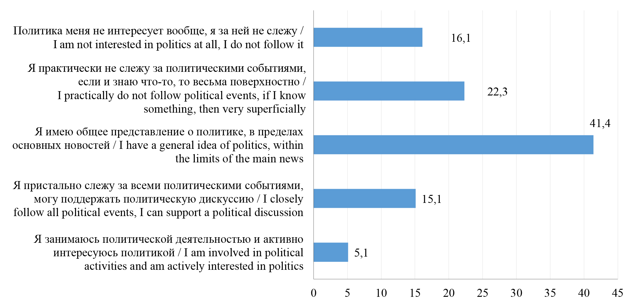 Политический эгоцентризм / Political egocentrism | 38,8 | 40,6 | 43,0 | 43,3 | 42,2 | 40,0 | 37,7 | 40,4 |