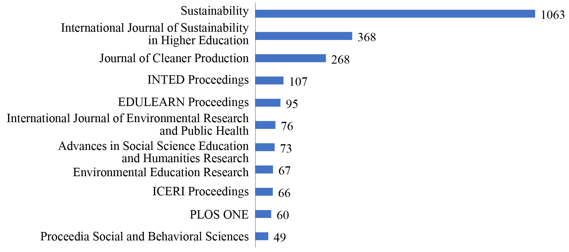 Furthermore, figure 2 that follows provides an account of the most prolific institutions producing publications on higher education and sustainable development between 1991 and 2023.