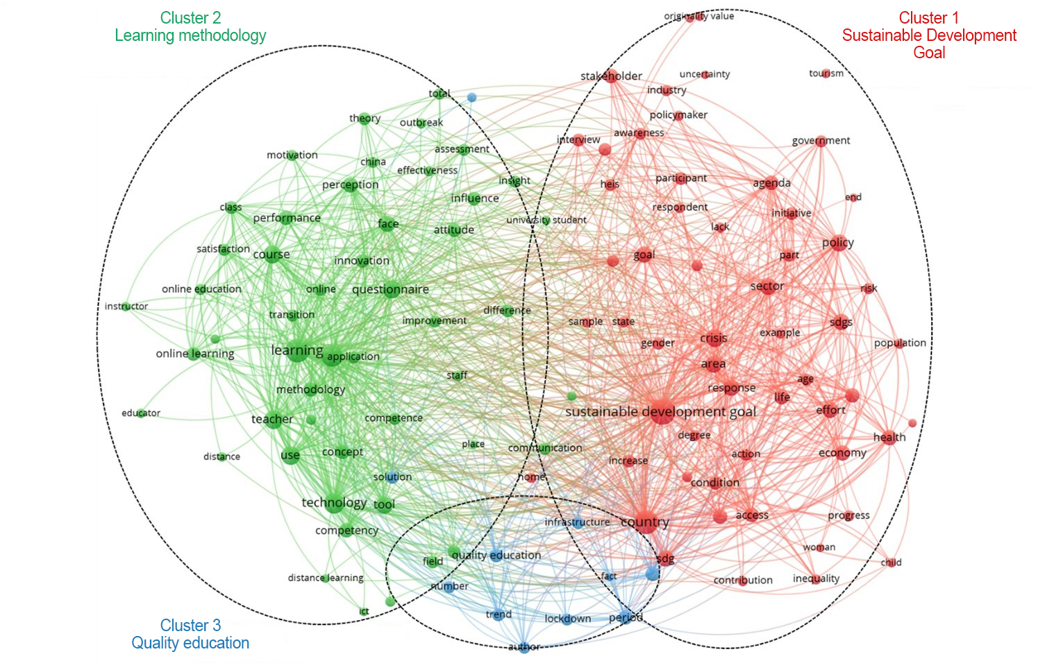 Results. The findings reveal a marked increase in academic production, thematic diversification, and the growing importance of digital transformation and quality education during crises. Clustered visualizations highlight prominent themes such as the UN Sustainable Development Goals (SDGs), online and hybrid learning, and institutional resilience.