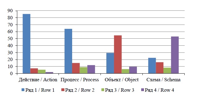 На основании результатов, представленных в таблицах 3 и 4, можно утверждать, что около 70 % опрошенных совершают концептуальные ошибки. На стадиях «Действие» и «Процесс» совершаются в основном процессуальные ошибки, поскольку обучение осуществляется по инструкции.