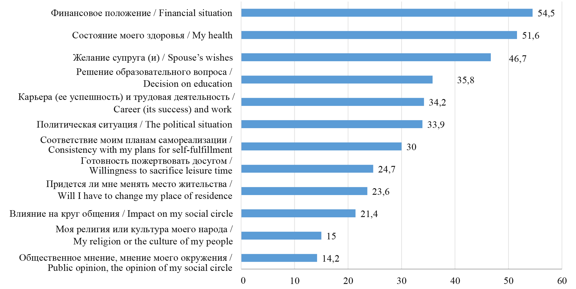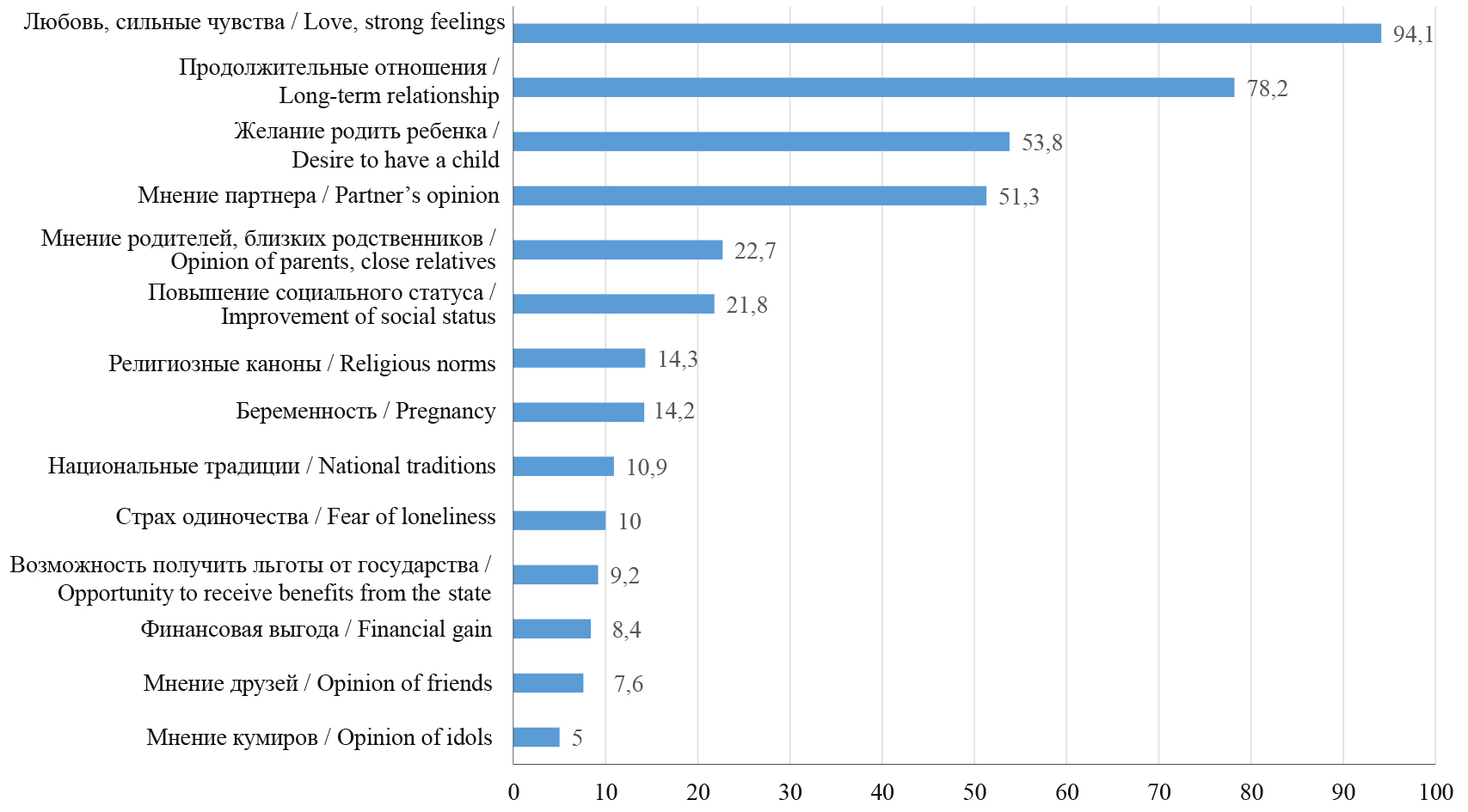 Рис. 3. Факторная модель принятия решения о вступлении в брак: анализ ответов респондентов, %