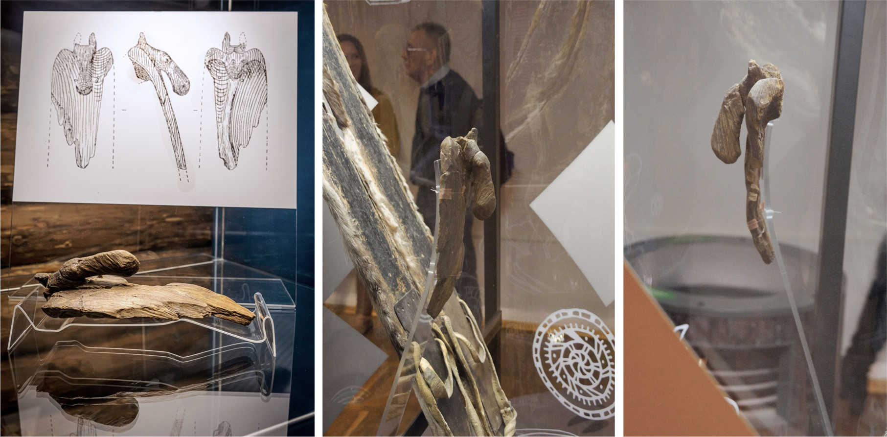 Рисунок 3. Лыжа веретьевского типа с реалистичным скульптурным изображение головы лося в экспозициях Национального музея Республики Коми.