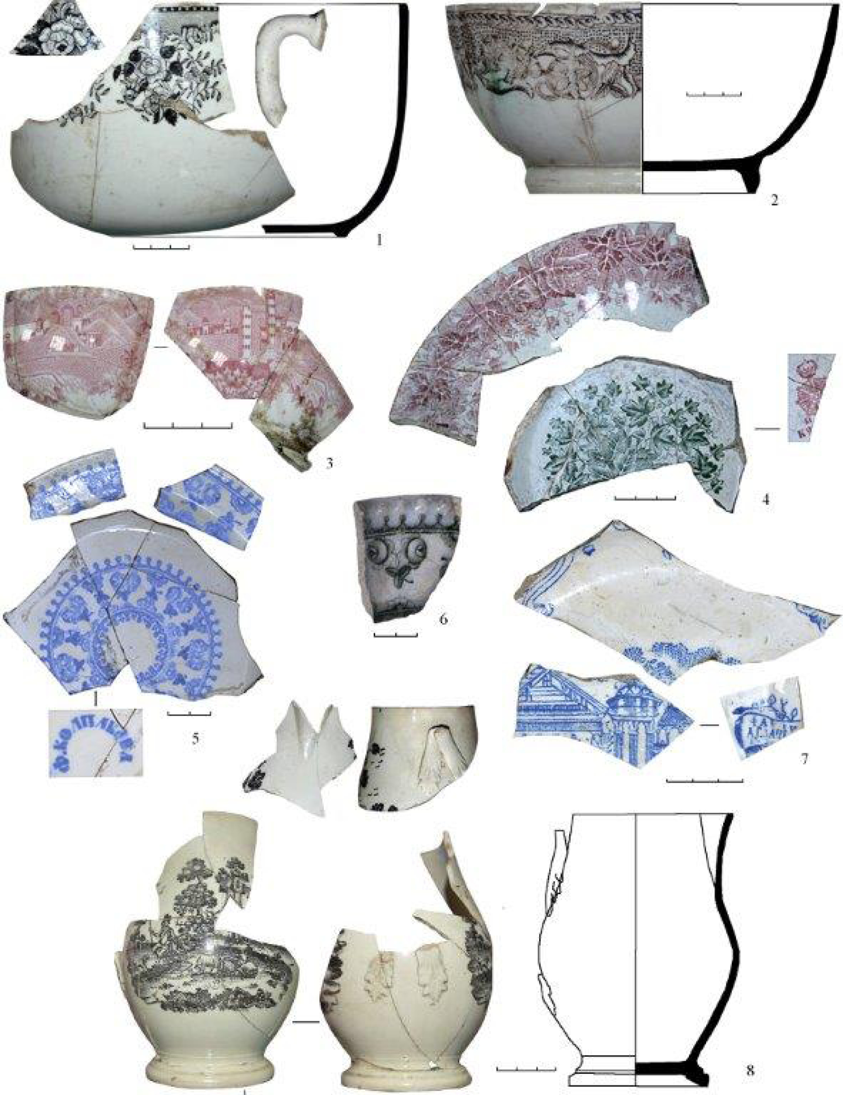 Fig. 4. Faience dishes from objects in Krasnaya street. of "Izhevsk Plant" settlement.