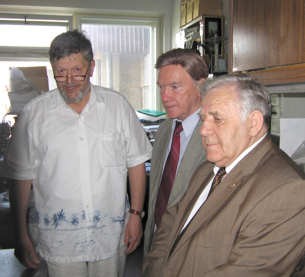 Photo 2. Inspection of the activities of the Institute of Physiology by the RAS Commission. From left to right: Vladimir Alexandrovich speaks about his studies to the RAS Corresponding Member D. P. Dvoretskiy and the Academician A.D. Nozdrachev, July 6, 2006. Photo made by M. V. Sokolova.