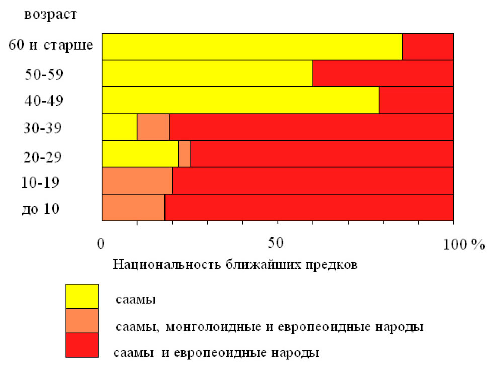 Pic. 4. The ethno-racial composition of the Saami people of different age groups