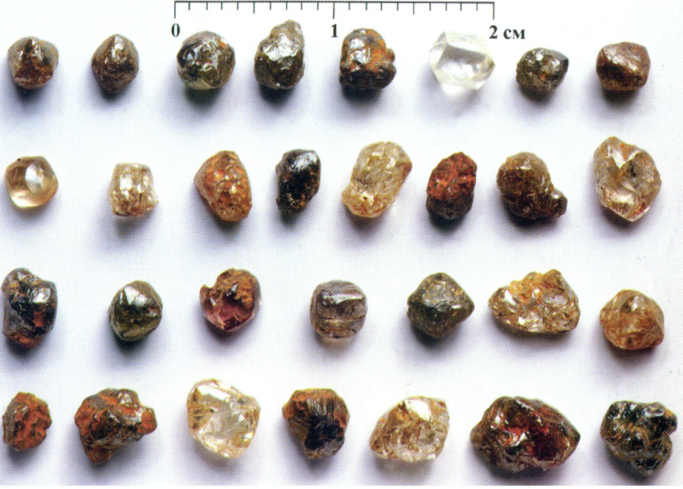 Рисунок 12. Алмазы из отложений россыпи Усунку-Юрэх (Приленский алмазоносный район)