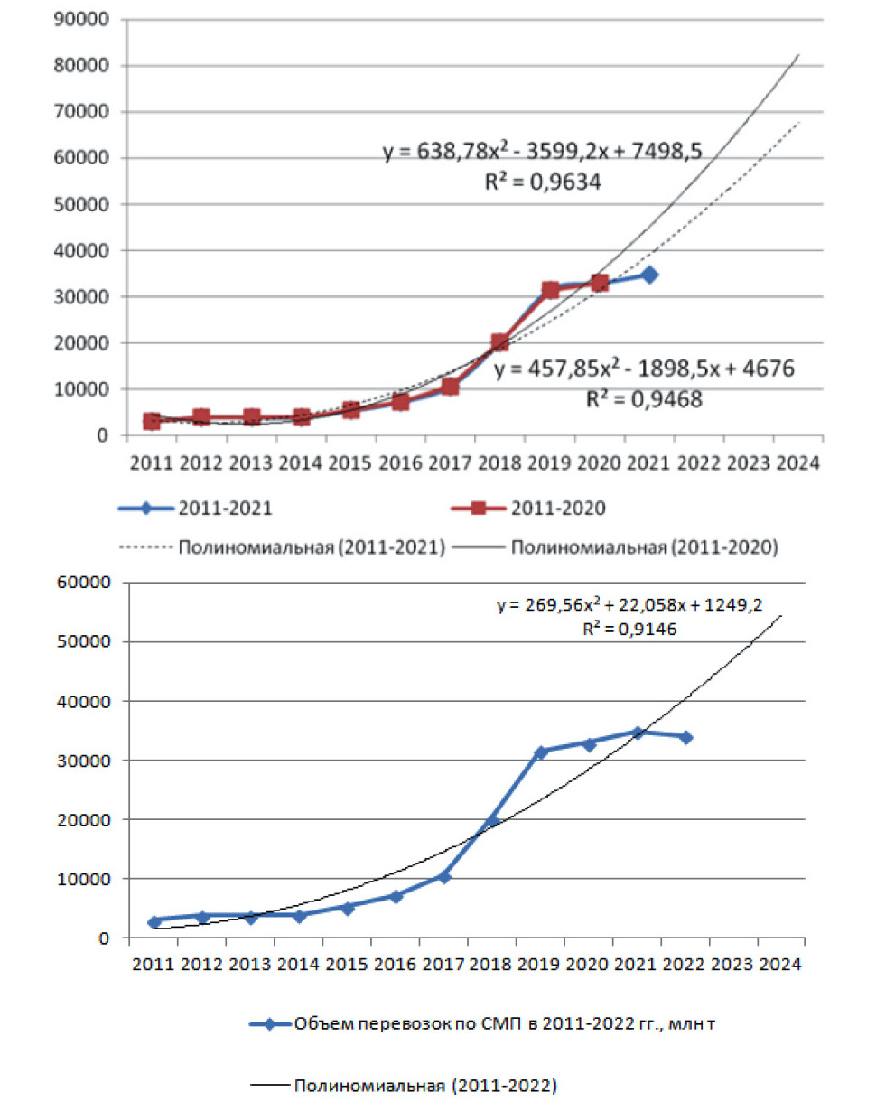 Прогнозирование объемов перевозок транспортной сети Европейской и Приуральской Арктики