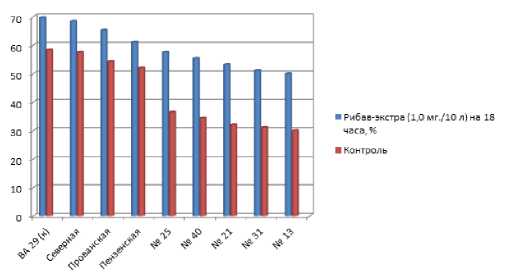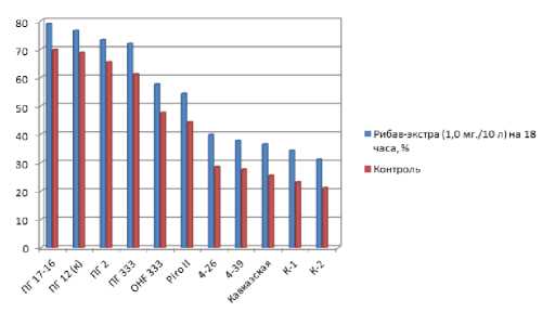Рибав-экстра (1,0 мг/10 л) на 18 часов, % | |||||