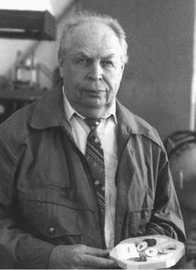 Founder of the Scientific School ‘‘Ceramics and composition materials’’ Dr. Sci. (Geol.-Mineral.) B. A. Goldin with samples made of new ceramic materials.