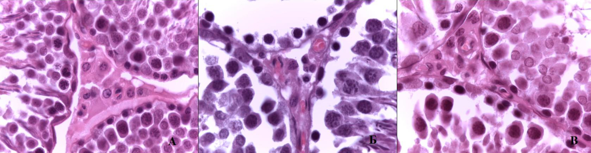 Для исследования морфологического состояния репродуктивной системы самцов крыс производили забор семенников. Ткань семенников помещали в 10%-й забуференный формалин с последующей автоматизированной гистологической проводкой (Leica TP1020) и окраской гематоксилином и эозином.