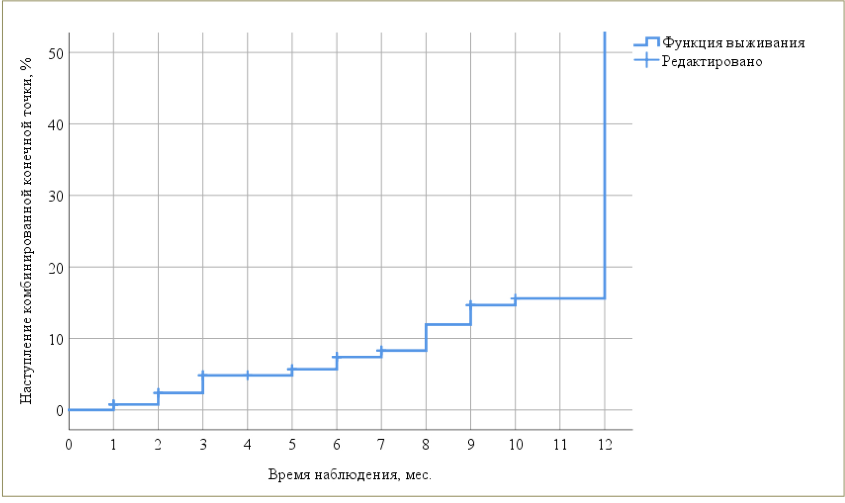 Рис. 1. Кривая Каплана – Майера, характеризующая вероятность достижения комбинированной конечной точки у больных ИМ на протяжении 12-месячного наблюдения (n = 130)