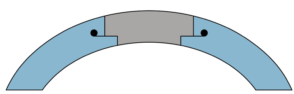 Для более безопасного расположения кольца, без тенденции к смещению, мы разработали технику 2. Согласно которой, ФСЛ выполняет подготовку ложа роговицы реципиента путем формирования профильного роговичного реза с паттерном «шляпка гриба» и образованием в остаточной строме бокового ламеллярного кольцевидного тоннеля (интраламеллярный рез), концентричного лимбу (рис. 3).