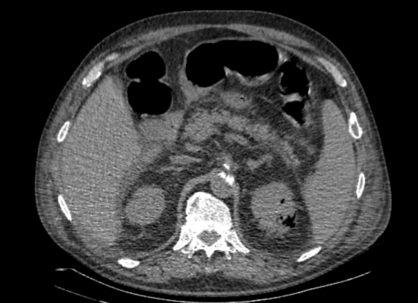 Рис. 5. Компьютерная томография органов брюшной полости, забрюшинного пространства, органов малого таза. Газ в левой почке