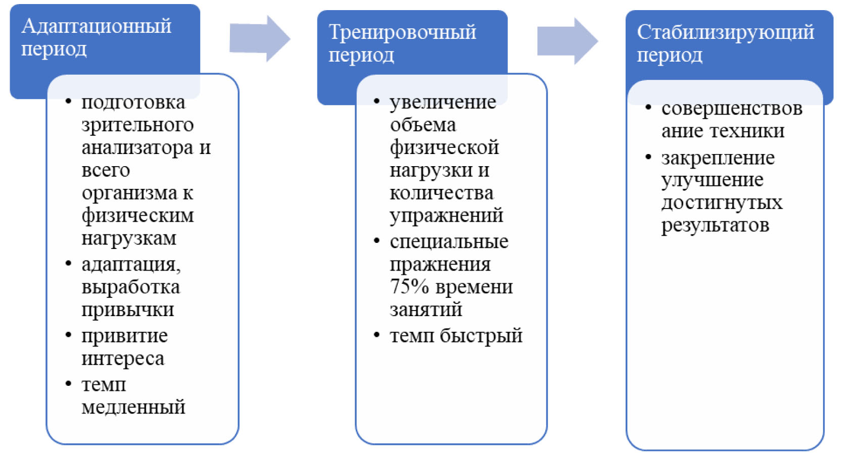 Рис. 2. Характеристика периодов физических тренировок