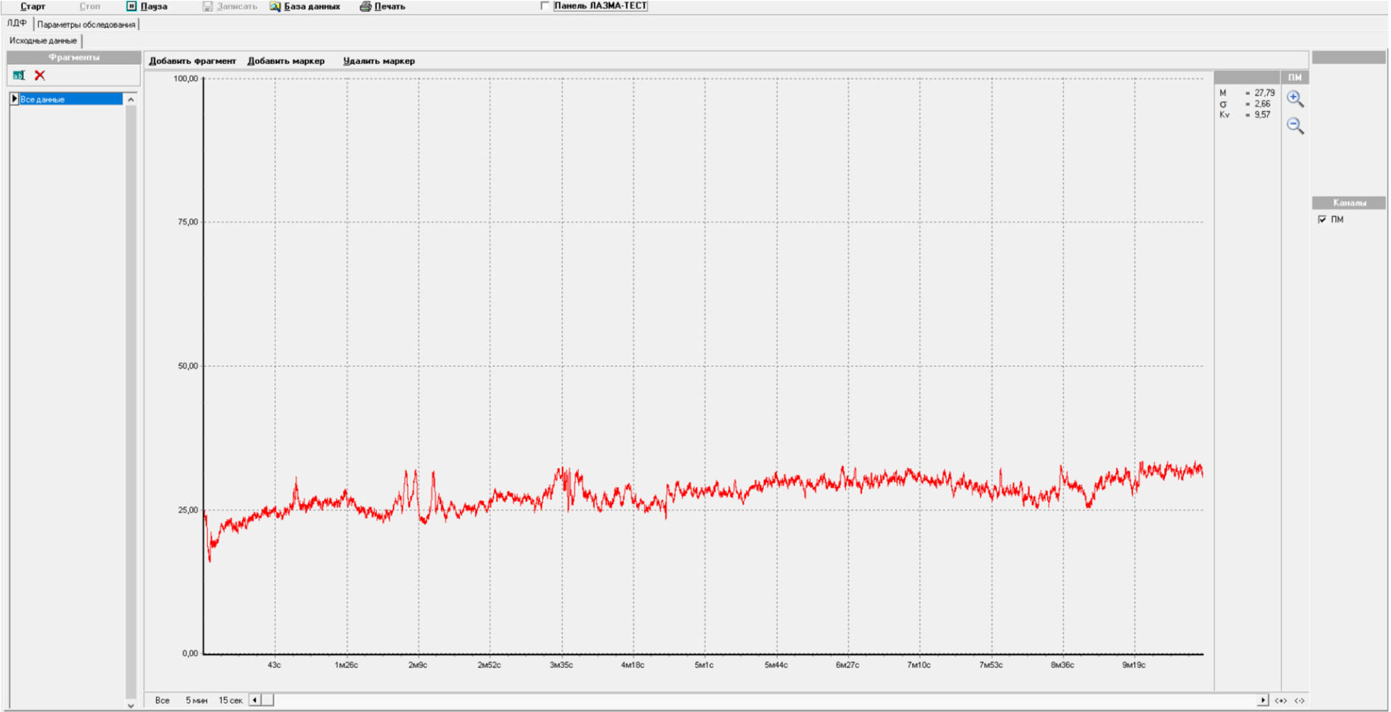 Рис. 4. Внешний вид ЛДФ-граммы до начала лечения