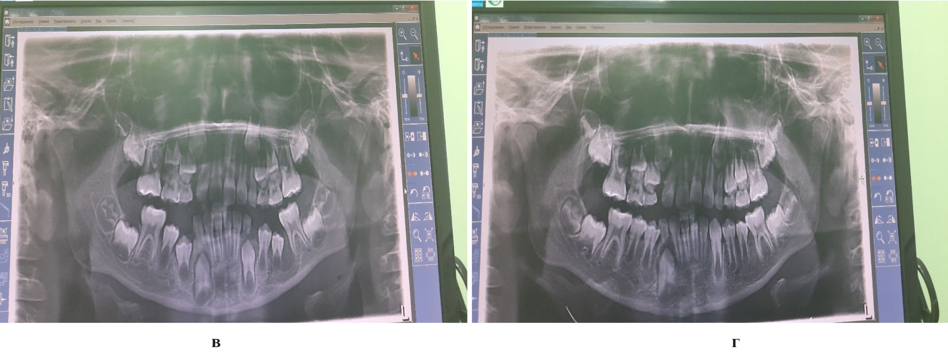 Рис. 5. ОПТГ пациента: а) до лечения; б) через 3 месяца