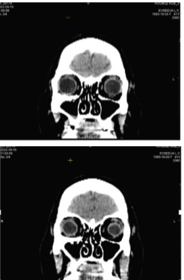 Рис. 4. Компьютерная томография орбит через год после операции. Клинический пример 1
