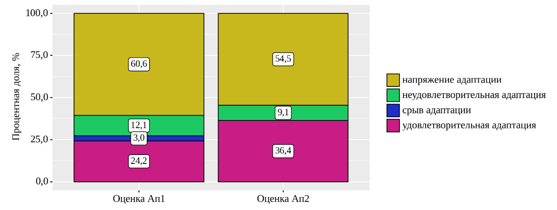 Удовлетворительная адаптация | 24,2 | 36,4 | |