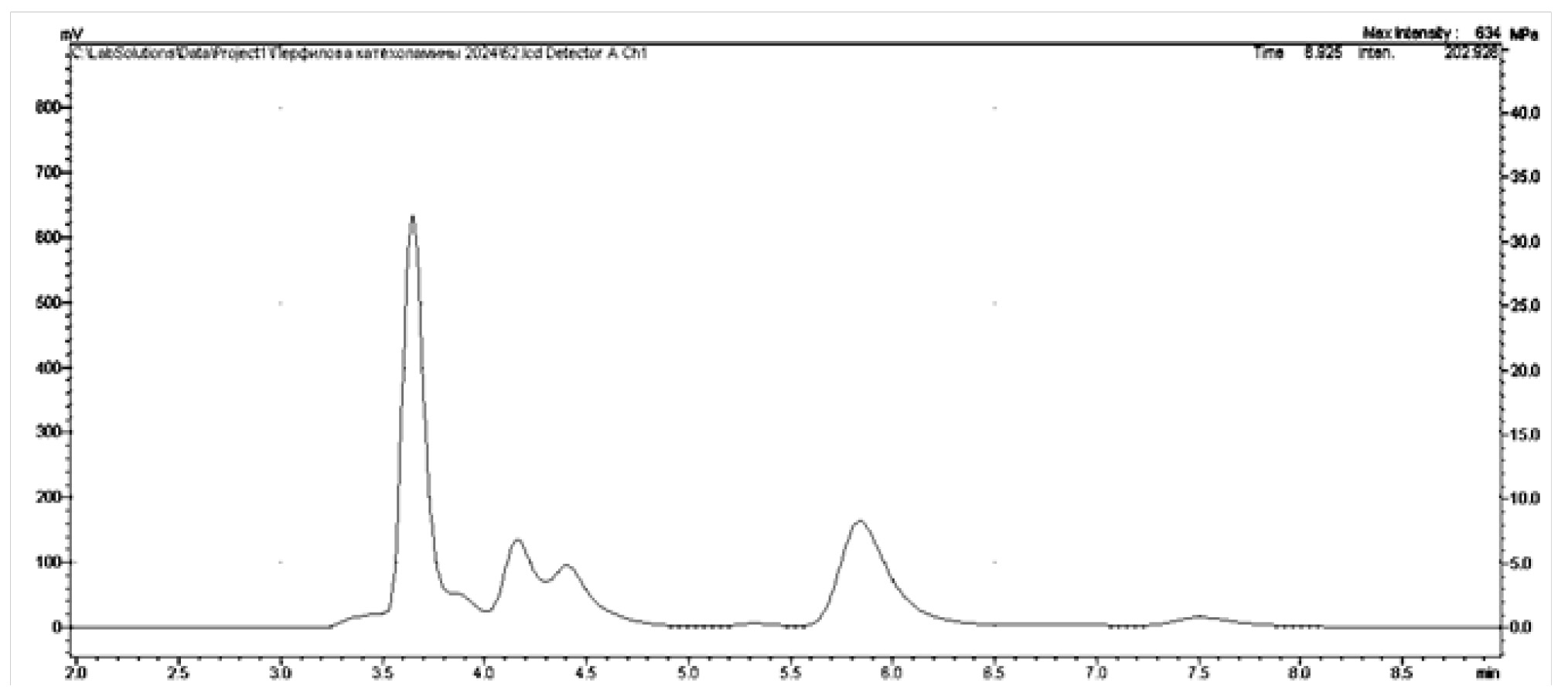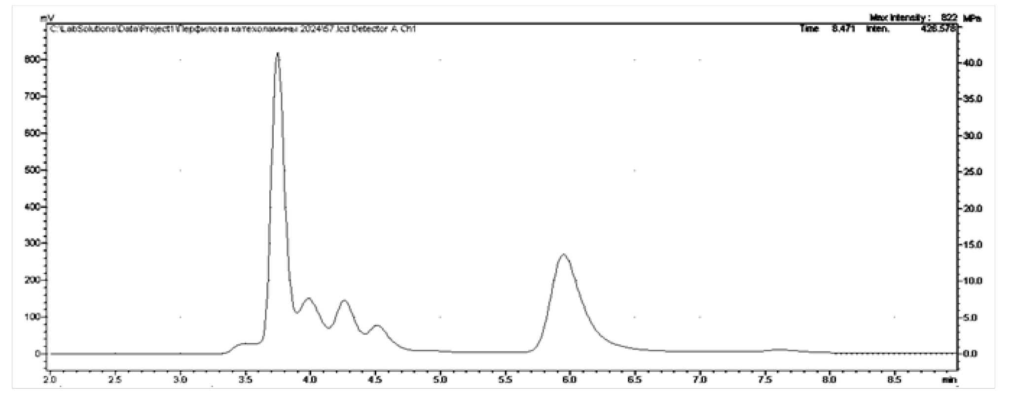 Рис. 8. Хроматограмма биологического фона префронтальной коры головного мозга крыс
