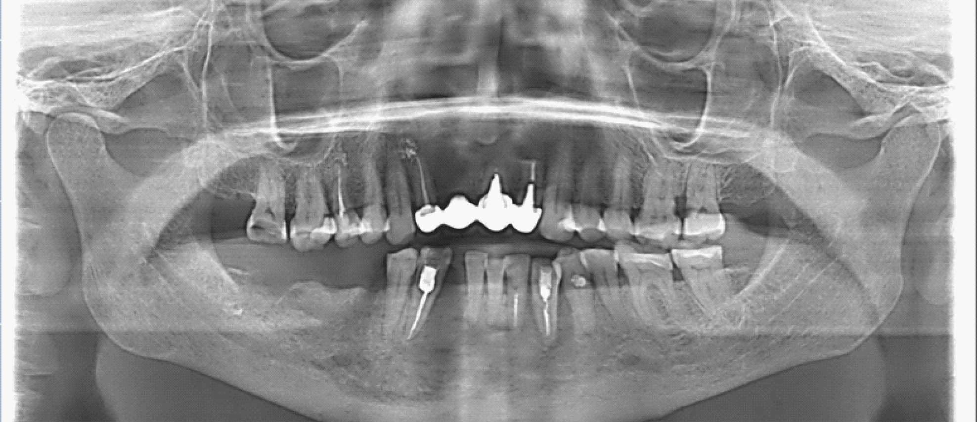 Пациент Р., 82 года, обратился в кабинет хирургической стоматологии с жалобами на острый край нижней челюсти. В ходе осмотра полости рта обнаружено нарушение целостности слизистой оболочки с субтотальным остеонекрозом альвеолярной части нижней челюсти во фронтальном отделе.