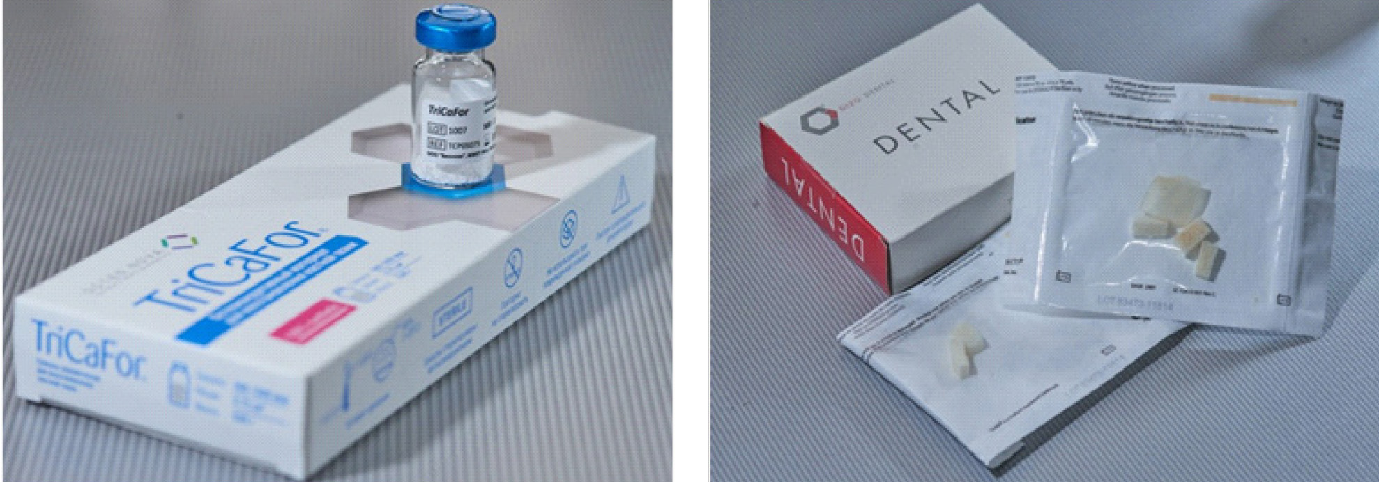Рис. 1. Использованные костнозамещающие материалы TriCaFor (Россия) и DENTAL (Германия)