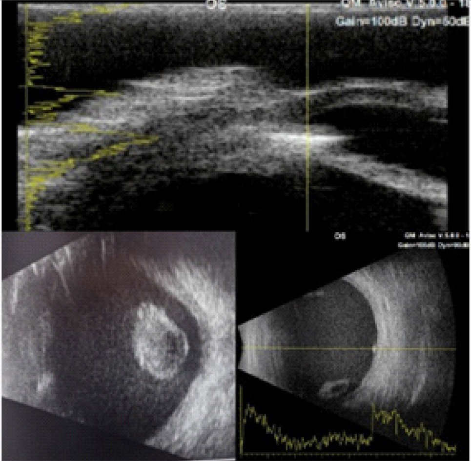 Рис. 2. УЗИ и УБМ левого глаза