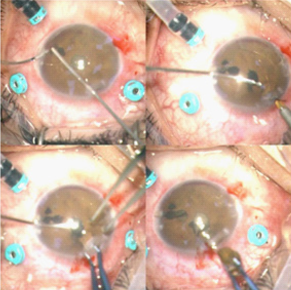 Рис. 7. Введение ПФОС; извлечение хрусталика; фото извлеченных хрусталика и ВГИТ