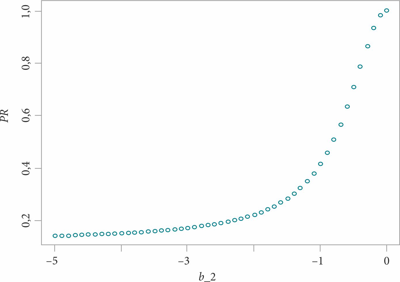 Зависимость предельного эффекта PR при росте инфляции для страны-лидера при стратегии по Штакельбергу от параметра b2 приведена на рис. 2, откуда следует, что с уменьшением значения параметра b2 предельный эффект роста инфляции для страны-лидера монотонно снижается.