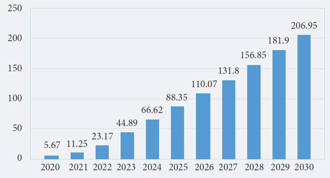 Рис. 1. Объем мирового рынка GenAI — тенденции и прогноз (млрд долл.)