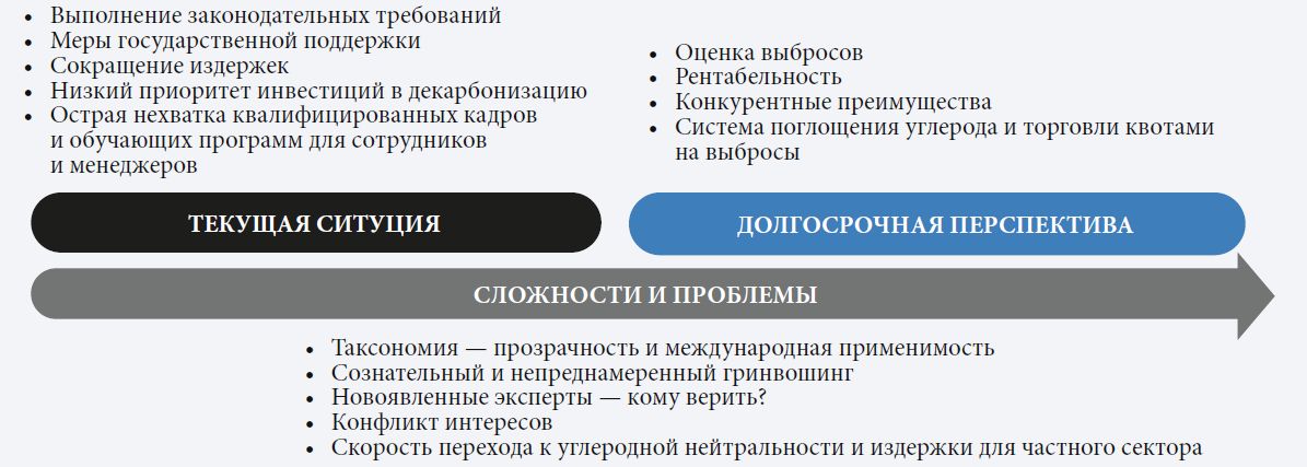 «Тем не менее, несмотря на признание преимуществ мер по сокращению затрат, участники выразили неуверенность в том, насколько существенными могут оказаться конкурентные преимущества от декарбонизации в их отраслях» (Эксперты 3, 5, 7).