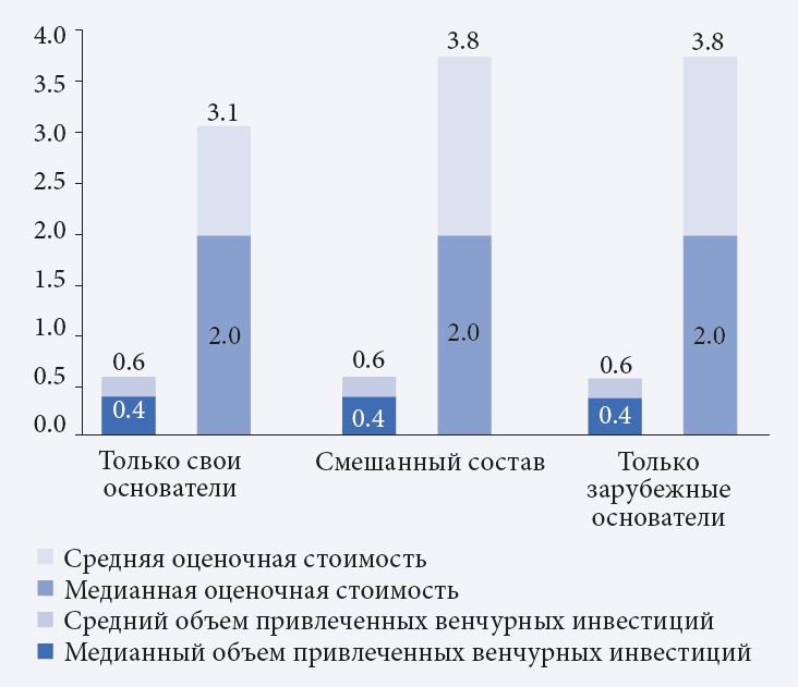 Стоимостные различия единорогов с иностранными и национальными основателями