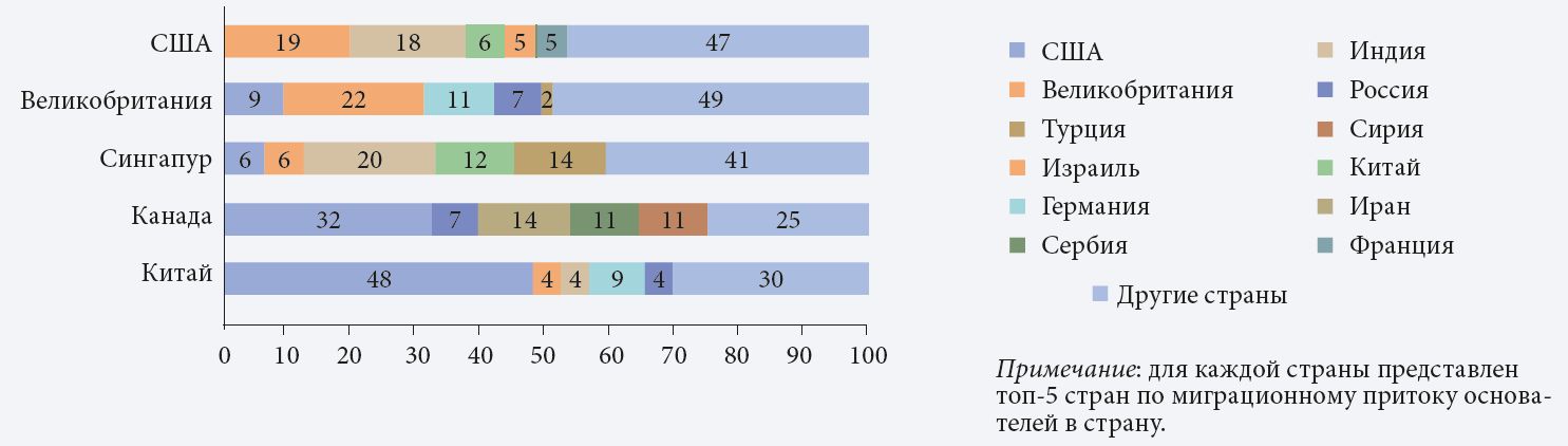 Национальный состав иностранных основателей и привлекающие их страны