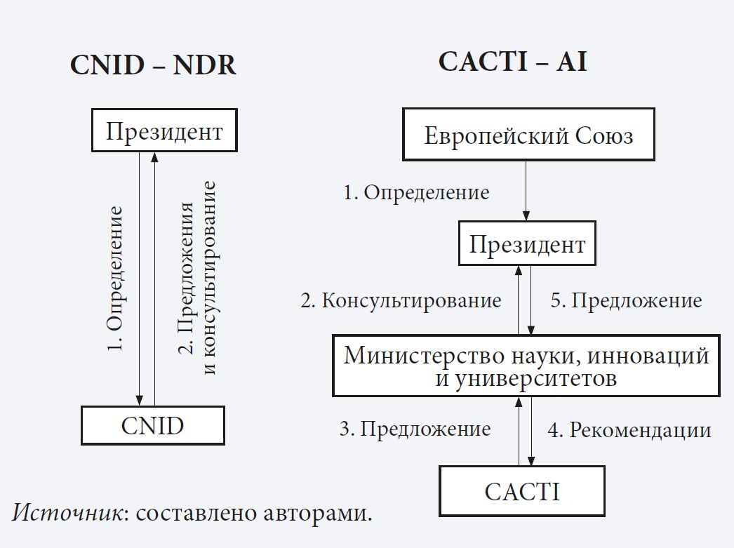 Рис. 1. Сравнение мандатов CNID и CACTI в отношении разработки стратегий развития НТИ