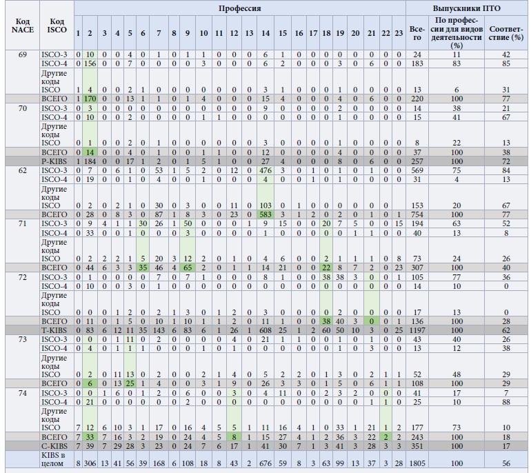 Табл. 3. Соответствие типов KIBS, кодов NACE и профессиональных групп ПТО