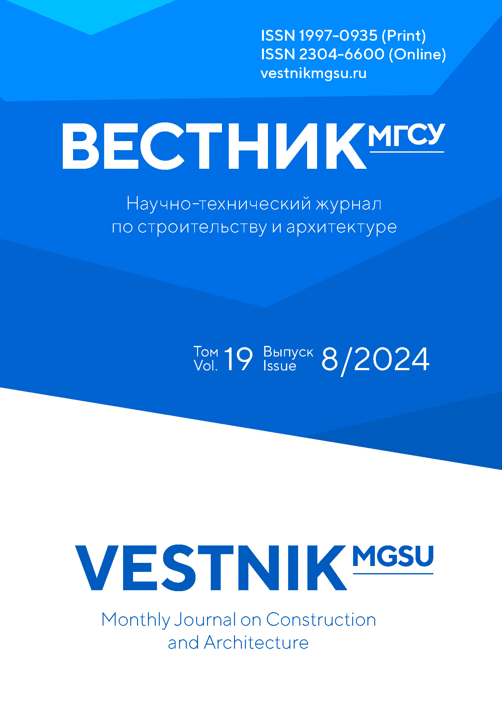 Введение. При проектировании металлических конструкций учитывают множество факторов, включая податливость узлов, что влияет на результаты расчетов напряженно-деформированного состояния (НДС) элементов конструкции. При проектировании высотных зданий предусматривают аутригеры, распределяющие ветровую нагрузку между ядром жесткости и периметральными колоннами каркаса, снижая горизонтальные перемещения. Учет податливости в узлах аутригера оказывает влияние на распределение усилий в элементах конструкций здания, а также на деформации здания. Представлен анализ влияния учета податливости узлов аутригера на НДС элементов стальных конструкций высотного здания.Материалы и методы. В качестве объекта исследования принята расчетная схема 60-этажного здания с аутригером, смоделированная в расчетном комплексе ETABS. Податливость узлов конструкций аутригера определялась с использованием программного комплекса IDEA StatiCa.Результаты. По результатам статического расчета с учетом податливости узлов аутригера при постановке одного аутригера на 54 этаже максимальное горизонтальное перемещение верха здания увеличилось на 2,9 % по сравнению с результатами расчета без учета податливости. При постановке двух аутригеров увеличилось на 4,7 %. Максимальное значение продольной силы в раскосе аутригера снизилось на 23 % по сравнению с результатами без учета податливости, а максимальное значение изгибающего момента увеличилось на 10 %.Выводы. При расчете высотного здания с учетом податливости значения горизонтального перемещения верха здания увеличиваются в пределах 5 %. Если при проектировании необходимо ограничить горизонтальные перемещения здания, то следует выполнять расчет с учетом податливости узлов металлических конструкций аутригера. Кроме того, учет податливости при расчете позволяет снизить металлоемкость проектируемых раскосов аутригера, так как определяющим усилием является продольная сила, которая при расчете с учетом податливости уменьшается в пределах 25 %.
