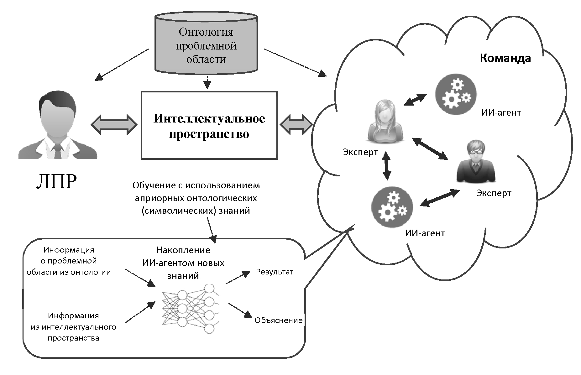 Рис. 4. Схема коллаборативной СППР, основанной на онтолого-ориентированном нейро-символическом интеллекте