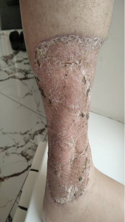 Рис. 5. Вид конечности 25 января 2022 г. (спустя 2 месяца после аутодермопластики)