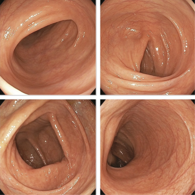 Рис. 1. Фиброколоноскопия (31.03.2022). Патологии толстой кишки не выявлено. Просвет толстой кишки не изменен, циркулярные складки обычных размеров, кишечная стенка эластична. Слизистая оболочка толстой кишки во всех отделах розовая, поверхность блестящая, сосудистый рисунок четкий