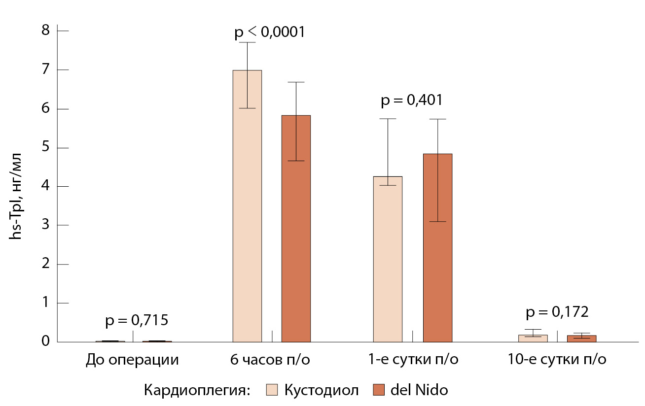 hs-TnI на 10-е сутки после операции, нг/мл | 0,172 | ||