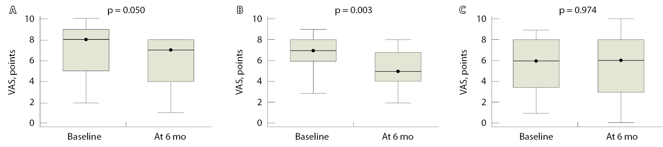 Учитывая пилотный характер работы, расчет мощности исследования исходно не проводили. Однако постфактум мы оценили, какую величину эффекта можно обнаружить в исследовании с набранным объемом наблюдений и заданным уровнем мощности 80%. Так, расчет, выполненный в программе GPower 3.1.9.7 (Franz Faul Universität, Kiel, Германия), свидетельствует, что на уровне значимости 0,05 и с мощностью 80% на выборках в 20 и 23 наблюдения с помощью критерия Манна – Уитни можно обнаружить различия с величиной эффекта (d Кохена) от 0,9 и выше.